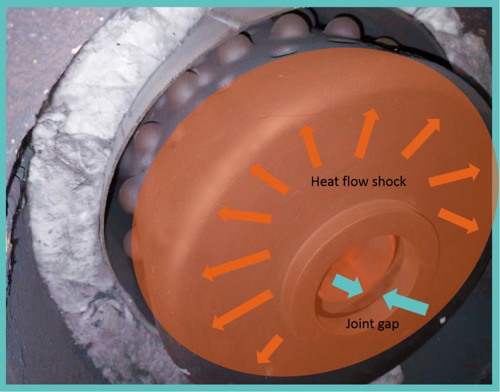 The figure right illustrates an actual case of damage to silicon carbide heat exchangers occurring in an industrial kiln. These heat exchangers developed cracks and ultimately fractures at the connection points with the burner nozzles after only a few usage cycles. It’s worth noting that even though this industrial kiln had replaced different heat exchangers several times, similar issues continued to arise.